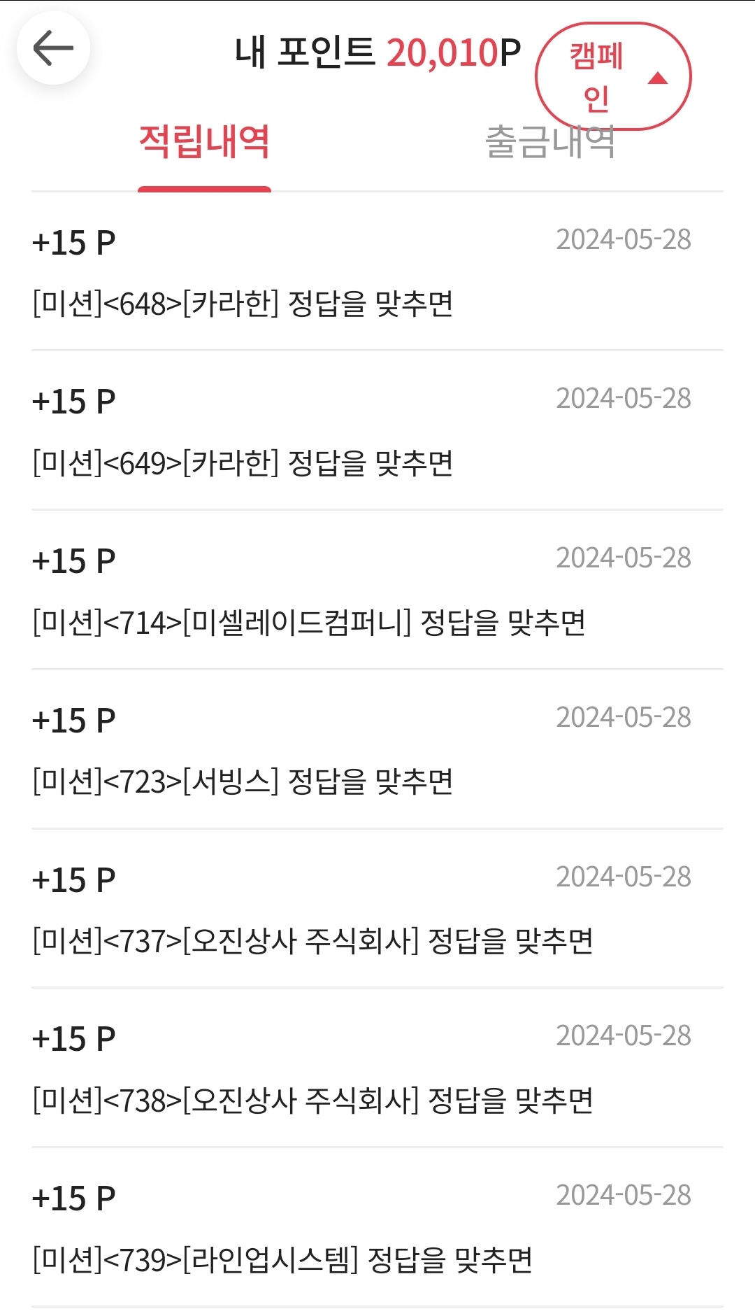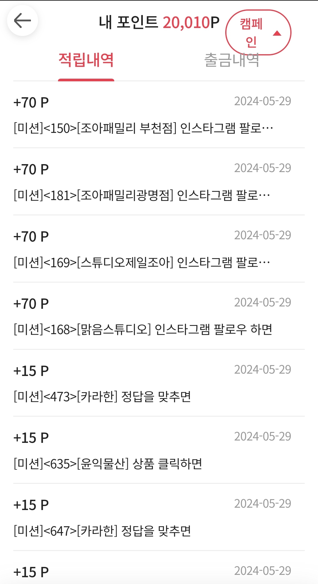 1차 현금화는 3월 5일인가 그때부터 시작해서 야금야금 채웠고 약 2달정도해서 2만원을 모았는데 이번달은 1달만에 2만원을 모았어요. 이번에 잘 모을 수 있었던것 원래 퀴즈만 푸는데 네이버플레이스 장소 추가, 인스타 팔로워를 조금더 적극적으로 했습니다 (단가 50~70인것 만)
