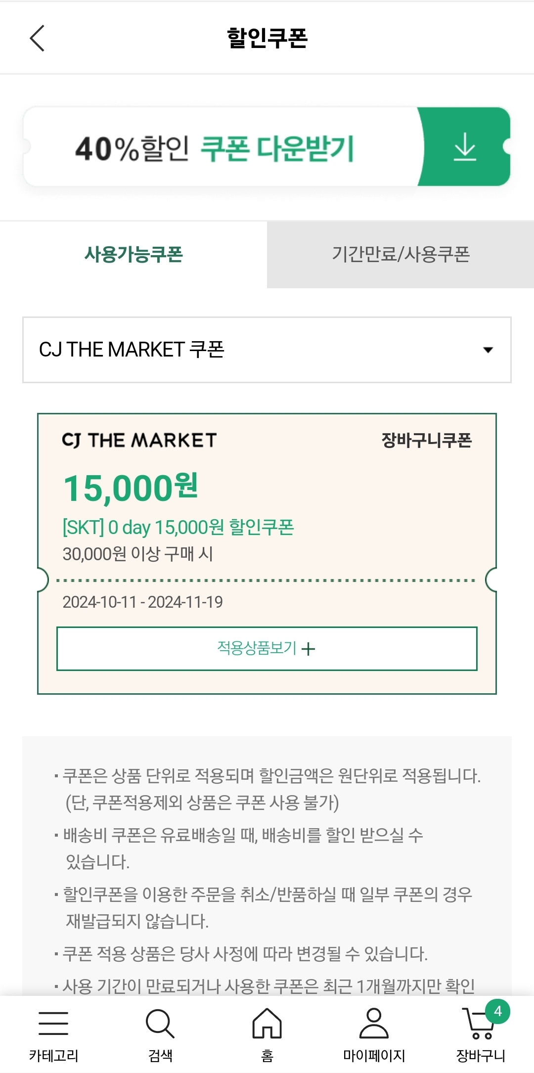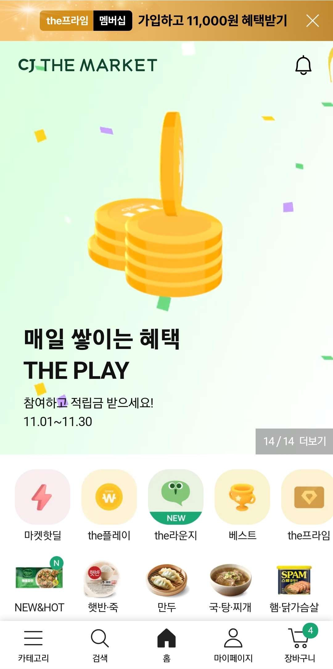 참고로 더마켓들 들어가면 상품이 매월 무슨 30~40%할인을 해요. 그래서 CJ라인 상품좋아하시면 더 마켓에서 구매하는 것도 하나의 방법입니다. 전 가공식품류보다 직접만들어먹는걸 좋아하는 편이라서 이런 쿠폰 올때 가끔 사요.