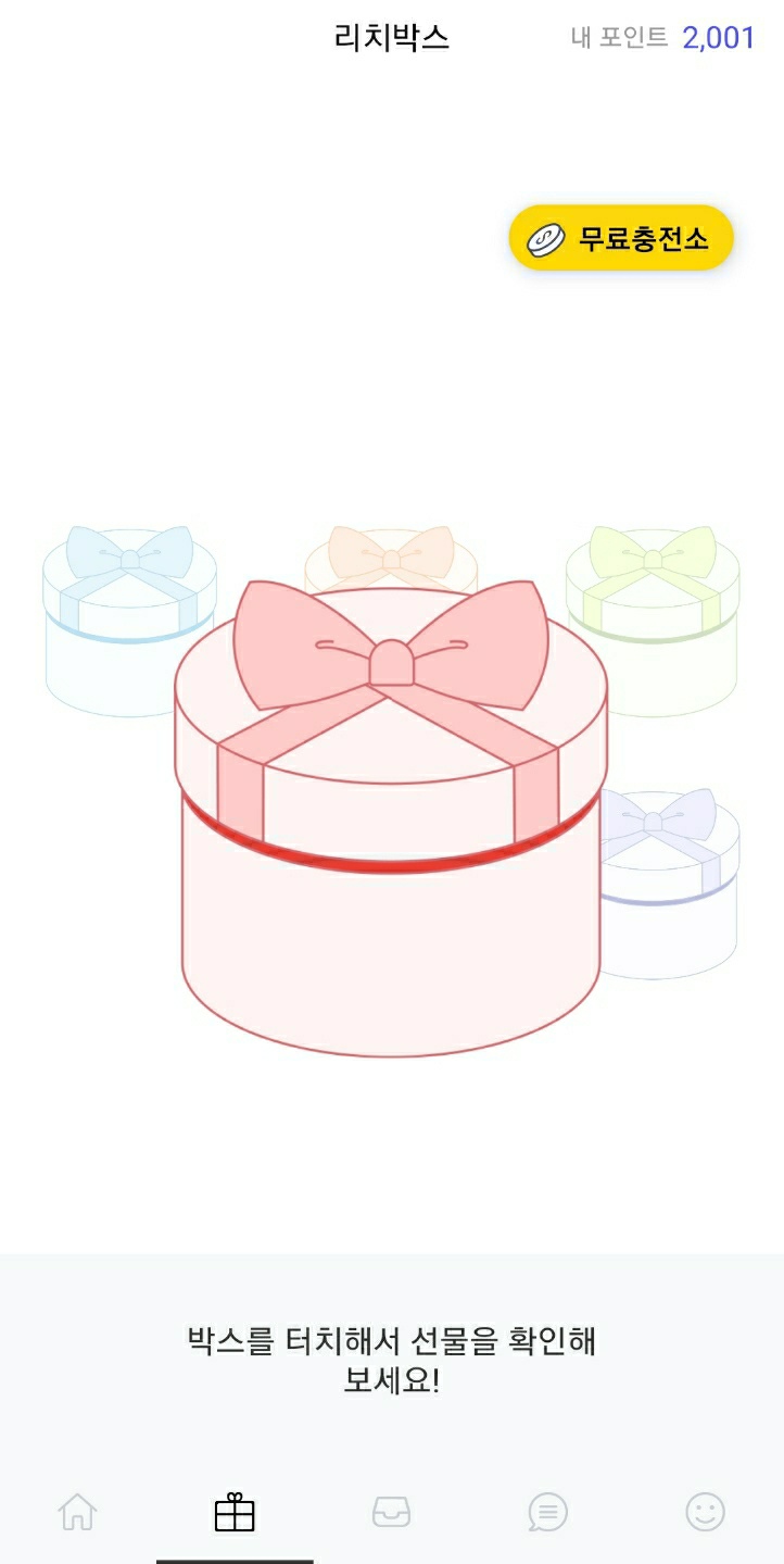 스크리치는 포인트로 따로 구매창이 있진 않고 2,000포인트를 모아 리치 박스를 열어서 기프티콘을 획득하는 시스템입니다. 저는 랜덤 박스를 통해 선물들을 주는데 저는 '식빵'을 받았어요